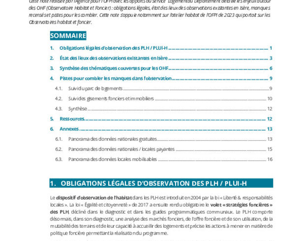 Cette note réalisée par l’Agence pour l’OFPI avec les apports du service Logementdu Département détaille les enjeux autour des OHF (Observatoire Habitat et Foncier) : obligations légales, état des lieux des observations existantes en Isère, manques... -