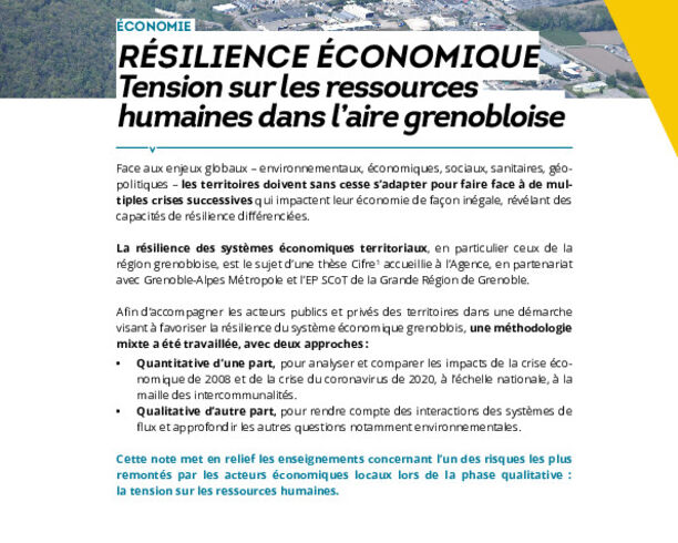 Publication09/2024Économie & CommerceRésilience économique : Tension sur les ressources humaines dans l'aire grenobloise