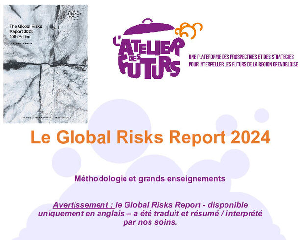 Publié chaque année depuis 2006 par le Forum Economique Mondial et présentée à l’occasion du Forum de Davos, le Global Risk Report passe en revue les risques systémiques à l’échelle mondiale avec une approche prospective (court terme – moyen terme... -