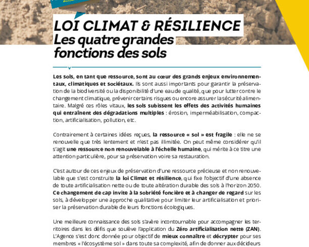 Publication06/2024Climat & ÉnergieLOI CLIMAT & RÉSILIENCE : Les quatre grandes fonctions des sols