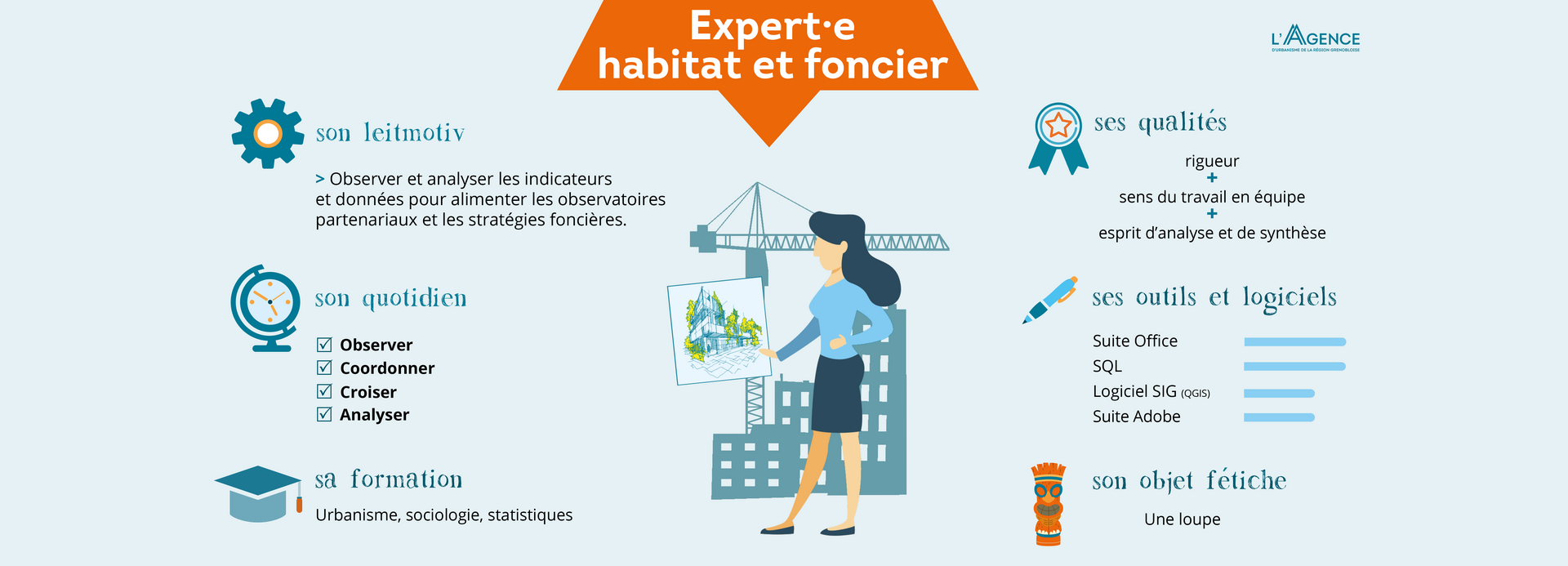 « Un·e chargé·e d'études Habitat ou Foncier travaille sur des tableaux de données, afin d’en extraire des indicateurs et des chiffres, puis de les analyser et de les cartographier pour faciliter leur compréhension. L’entrée base de données est très importante dans ce métier. Il nous est indispensable de connaître et de maîtriser les bases de données sur lesquelles on travaille. »