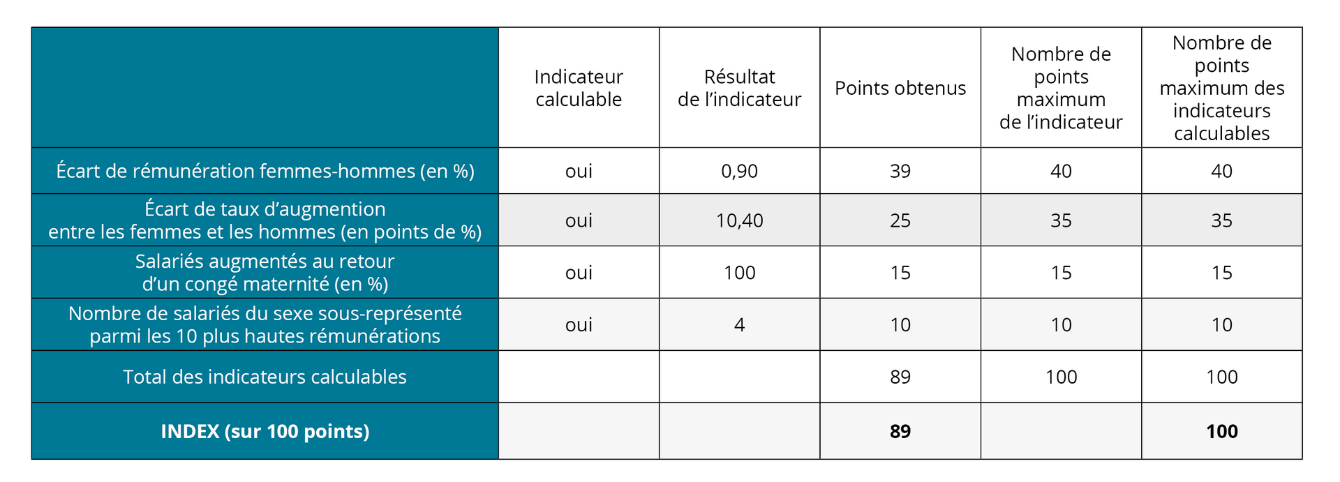 Cet Index, sur 100 points, se calcule à partir de 4 indicateurs définis par le Ministère du travail :