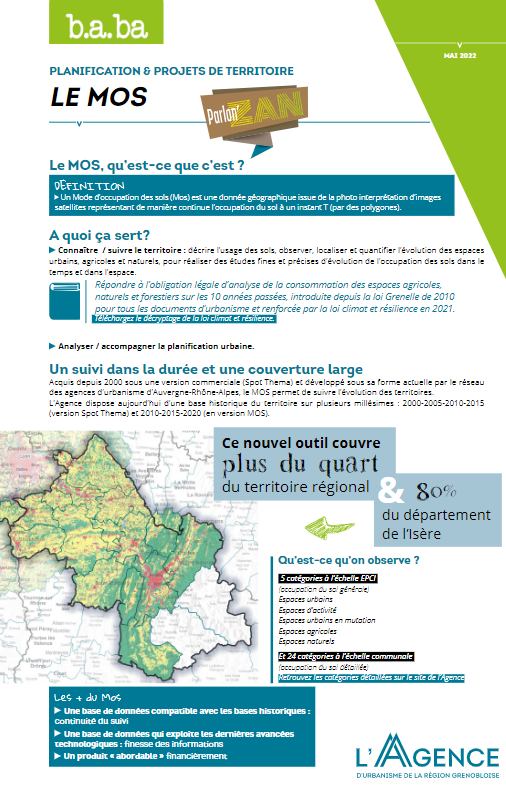 Afin d’accompagner les collectivités dans la définition de leurs enjeux de sobriété foncière, l’Agence d’urbanisme a mis à disposition un premier jeu de données de consommation d’espaces produit à partir de son MOS 2010-2020, à savoir une analyse cartographique à l’échelle des EPCI de la grande région de Grenoble, avec un tableau de bord à plusieurs niveaux de territoire (ScoT, EPCI, commune). Un mode d’occupation des sols est une donnée géographique issue de la photo interprétation d’images satellites, représentant de manière continue l’occupation du sol à un instant T. Voir nos publications dédiées.