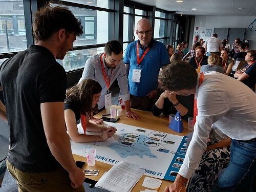 Au fil des cartes placées successivement sur une matrice, les participants se questionnent, témoignent et s’acculturent sur les enjeux et leviers en matière d’urbanisme et d’aménagement de nos territoires.