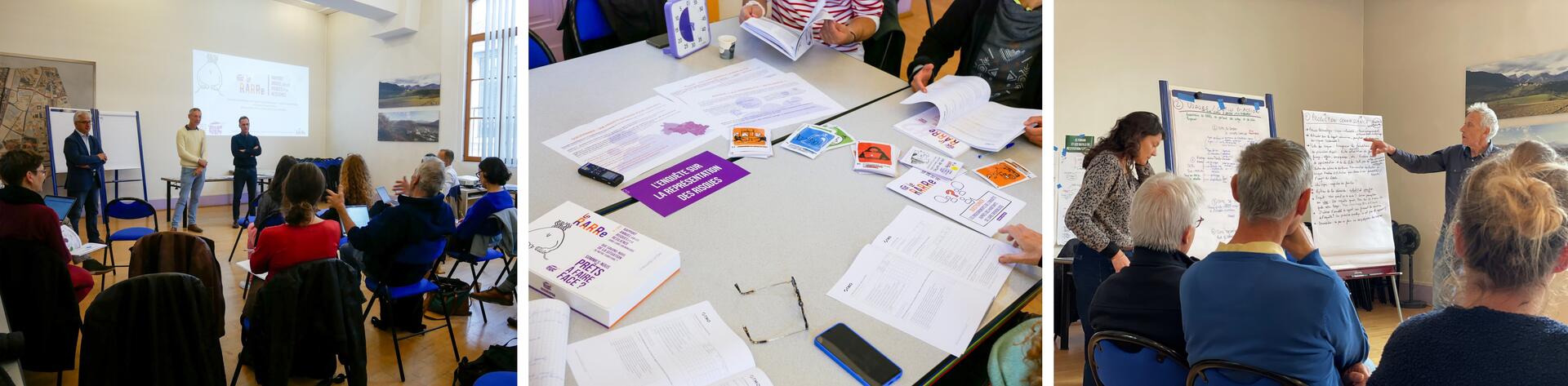 À l’issue des deux jours en immersion dans le RARRe, les chercheurs ont présenté à chaud le fruit de leurs réflexions aux deux élus référents du conseil scientifique, Pierre Verri et Philippe Cardin. En préambule ils ont tenu à souligner « un travail incroyablement sérieux et utile ». Selon les questions qui leur étaient posées, ils ont amené deux axes d’évolution pour la démarche : temporiser la production de connaissances en raison d’un corpus déjà robuste et peu évolutif et surtout, faire du RARRe un vrai outil pour le passage à l’action. Au-delà des questions de sémantique visant à simplifier et requalifier la liste des risques pour la rendre plus exploitable, la proposition porte sur une révision de la démarche qui partirait moins de la liste exhaustive des risques que des usages et des cibles.