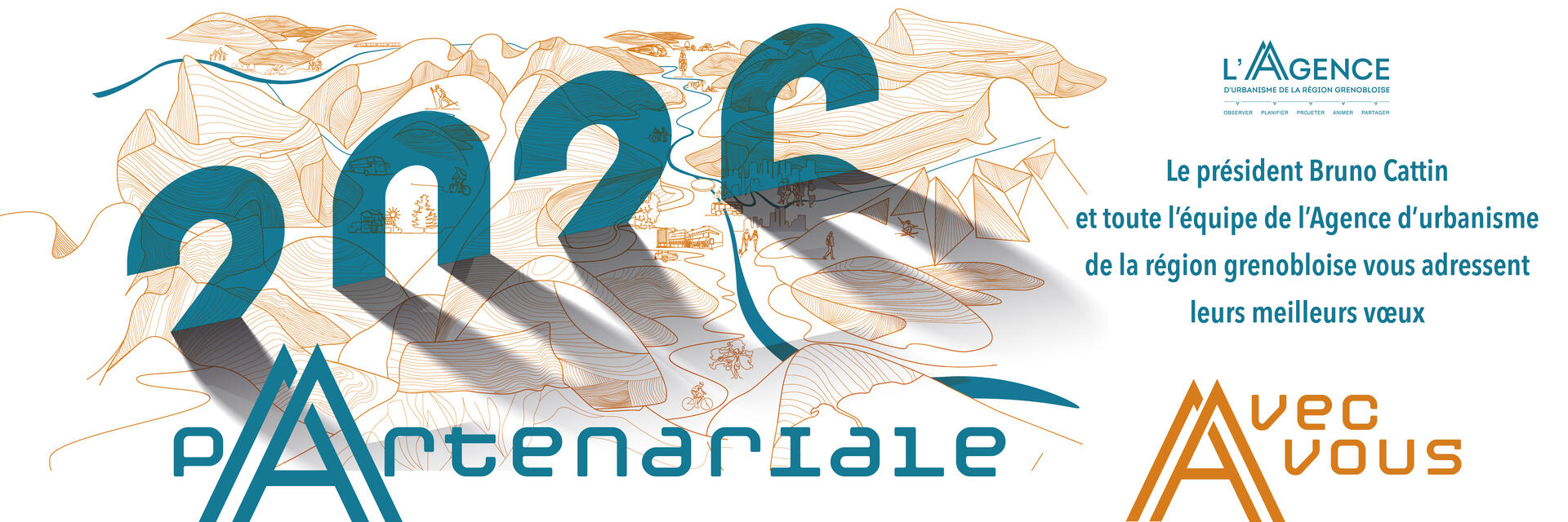 Le président Bruno Cattin et toute l'équipe de l'Agence d'urbanisme de la région grenobloise vous adressent leurs meilleurs vœux pour l'année 2026.