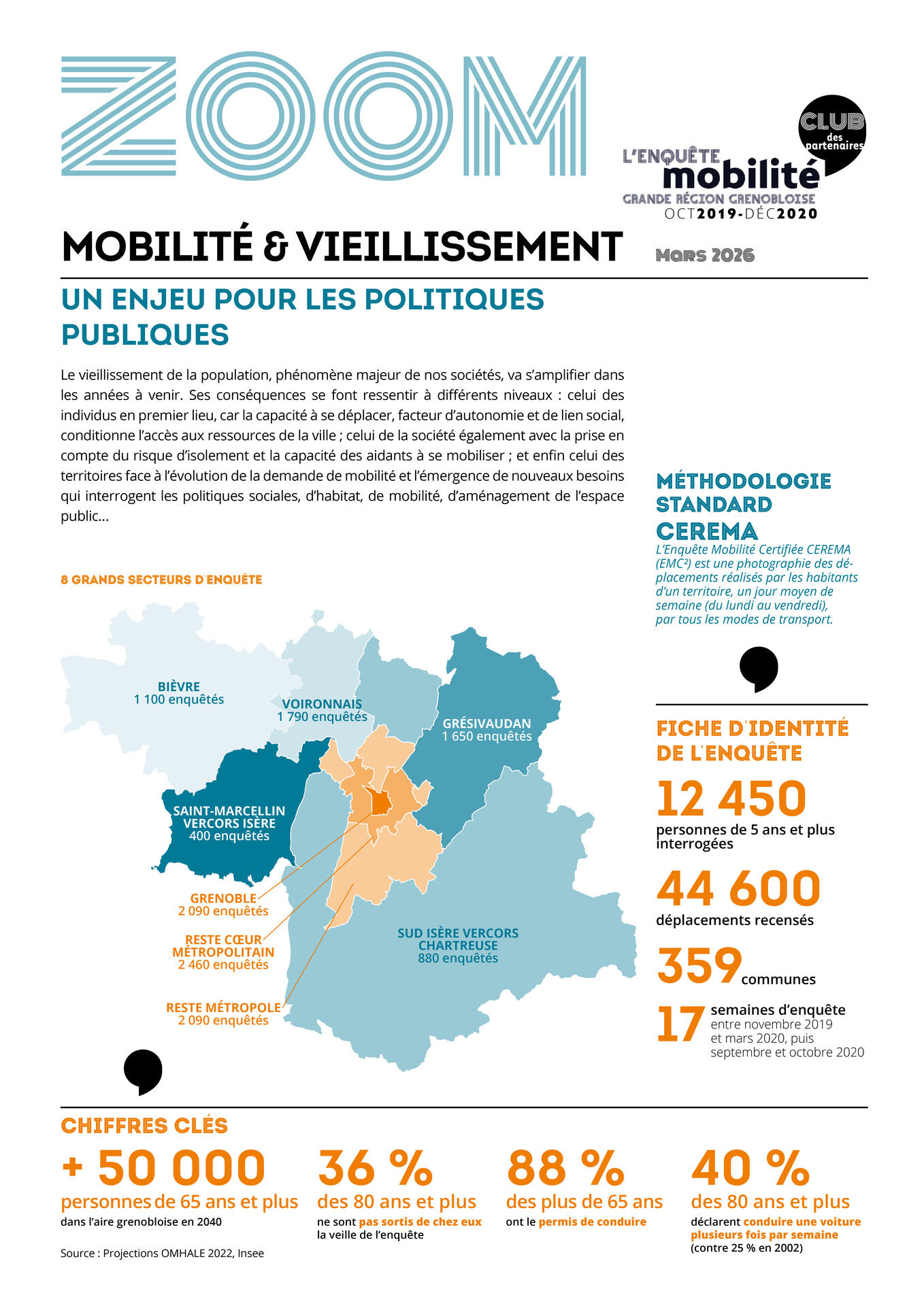 L'Agence publie le ZOOM thématique "Mobilité et vieillissement. Un enjeu pour les politiques publiques", septième numéro de la série dédiée à la valorisation des résultats de l'enquête Mobilité grande région grenobloise (EMC2 2019-2020).