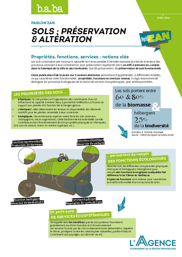 Les sols constituent une ressource naturelle non renouvelable à l’échelle humaine (du fait de la lenteur des processus amenant à leur constitution). Leur préservation représente alors un défi à prendre en compte dans la fabrique de la ville et des territoires. Qui dit préservation, dit préservation de sols fonctionnels.
