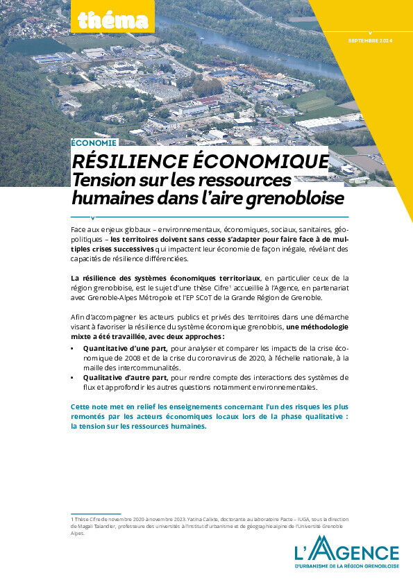 La résilience des systèmes économiques territoriaux, en particulier ceux de la région grenobloise, est le sujet d’une thèse Cifre1 accueillie à l’Agence, en partenariat avec Grenoble-Alpes Métropole et l’EP SCoT de la Grande Région de Grenoble.