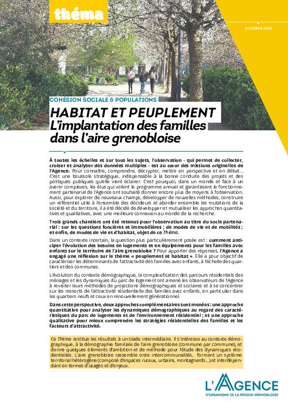 enfants sur le territoire de l’aire grenobloise ? Pour apporter des réponses, l’Agence a engagé une réflexion sur le thème « peuplement et habitat ». Elle a pour objectif de