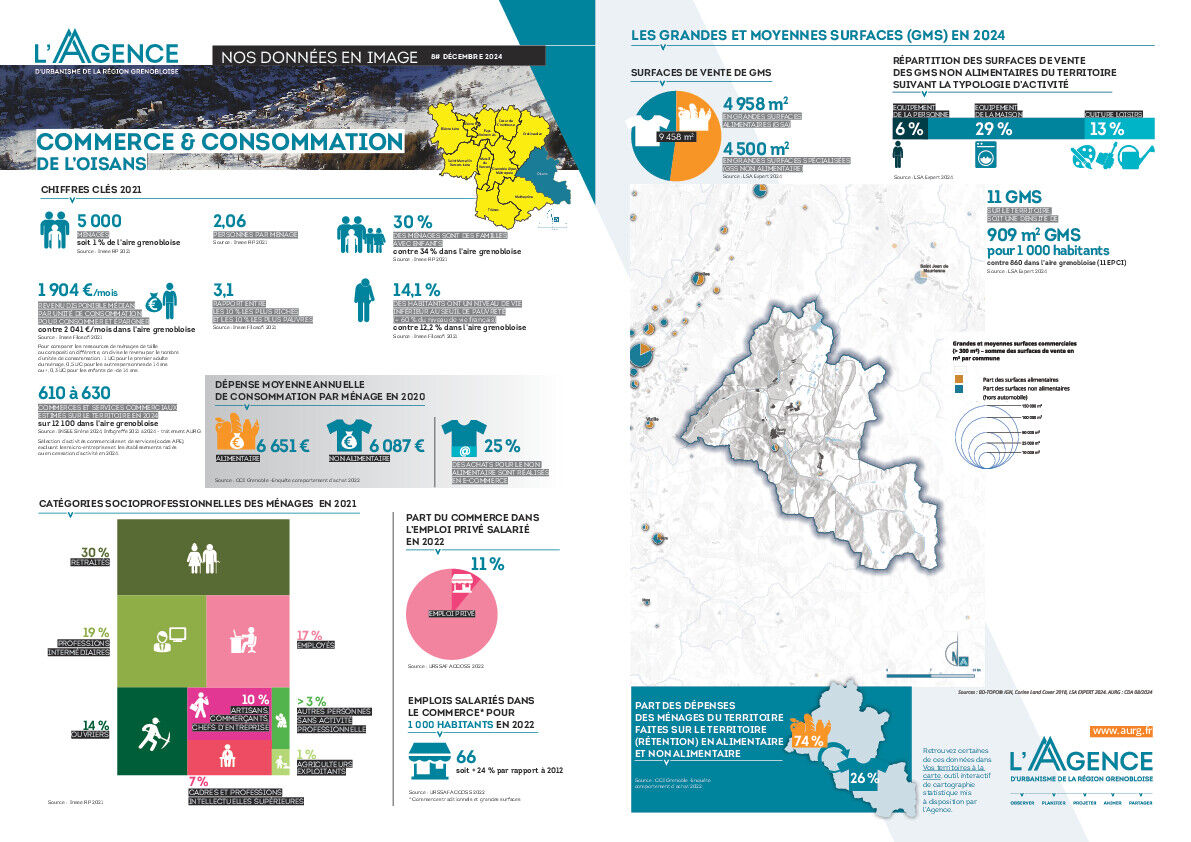 Elle dresse ainsi un portrait actualisé de l’aire grenobloise et des onze intercommunalités qui la composent en matière de commerce et de consommation.