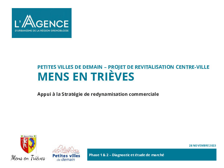 La commune de Mens a lancé une étude pour redynamiser son commerce local. L’objectif était de mieux comprendre la situation actuelle, d’identifier les commerces porteurs pour le centre-bourg, et de définir des outils adaptés à une stratégie de développement. L’étude s’est déroulée en trois phases : un diagnostic commercial, une analyse du potentiel de marché, puis la formulation de scénarios de positionnement.