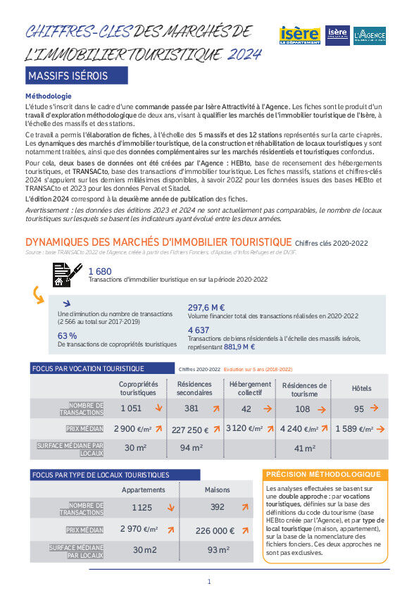 L’étude s’inscrit dans le cadre d’une commande passée par Isère Attractivité à l’Agence. Les fiches sont le produit d’un travail d’exploration méthodologique de deux ans, visant à qualifier les marchés de l’immobilier touristique de l’Isère, à l’échelle des massifs et des stations.