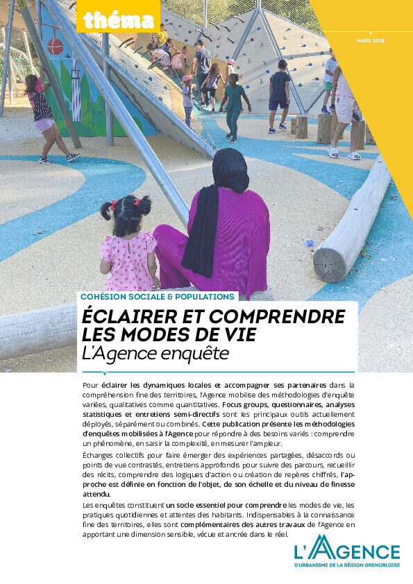 Pour éclairer les dynamiques locales et accompagner ses partenaires dans la compréhension fine des territoires, l’Agence mobilise des méthodologies d’enquête variées, qualitatives comme quantitatives. Focus groups, questionnaires, analyses statistiques et entretiens semi-directifs sont les principaux outils actuellement déployés, séparément ou combinés. Cette publication présente les méthodologies d’enquêtes mobilisées à l’Agence pour répondre à des besoins variés : comprendre un phénomène, en saisir la complexité, en mesurer l’ampleur.