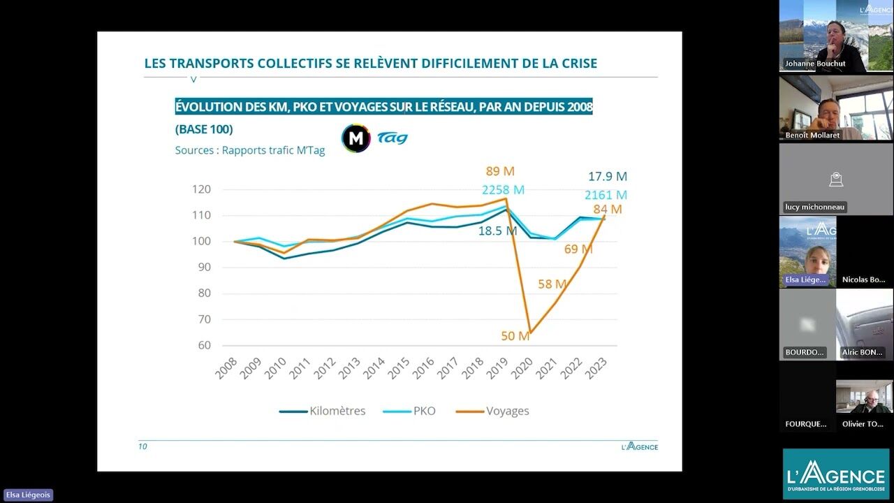 Le webinaire du 13 février 2025 était consacré à une présentation de la publication Chiffres clés 2023 des déplacements, publiés en janvier 2025 par l'observatoire des déplacements de la région grenobloise.