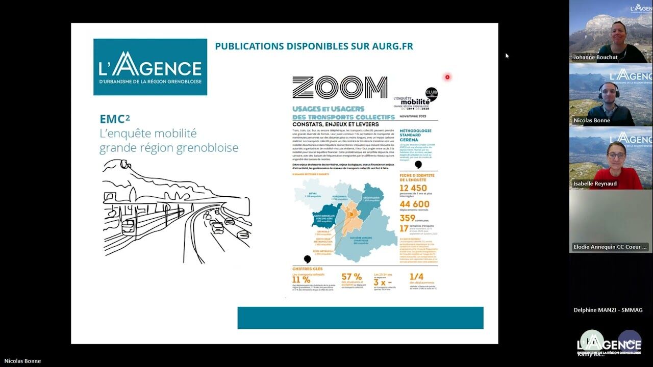 Le webinaire du 12 décembre 2023 était consacré au zoom thématique Usages et usagers des transports collectifs, publié par l'Agence en novembre 2023 pour les partenaires de l'enquête mobilité Grande région grenobloise.