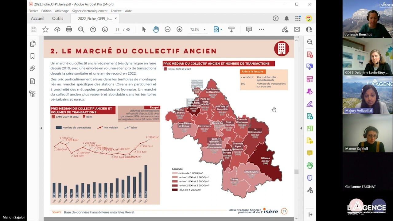 Le webinaire du 30 novembre 2023 était consacré à la fiche Isère 2022 de l'OFPI (Observatoire Foncier Partenarial de l'Isère), dont la partie "marchés
